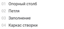 Изделия создают из каркаса, столбов, и наполняют створки заказанным заказчиком материалом. Каркас создан из трубы прямоугольной или квадратной. Для столбов подходит профиль 100х100 мм или 80х80 мм.
